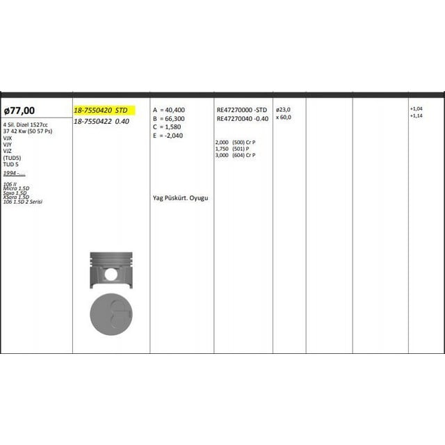 Ürünümüz Piston Segman 77.00Mm Std 106 Ax Saxo Xsara Zx Rıken Segmanlı Muadil Üründür. Bu Ürünü Eper Otomotiv olarak sizlere ulaştırmaktayız.